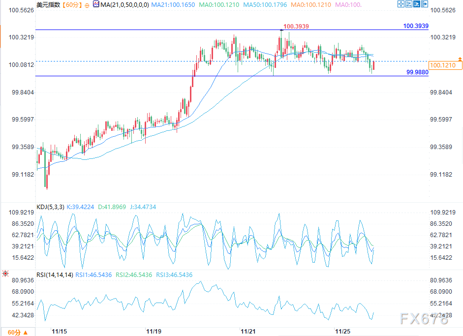 尽管降息预期从低迷迅速升温,美元指数却未出现剧烈震荡,反而呈现“高位稳健”特征——自10月以来,美元指数主连价格稳定在99-100.3区间,11月24日收盘价为100.135,11月19日更是从99.49攀升至100.055,全程未触及原文所述的96-99下限区间;贸易加权指数三个月来基本持平,外汇隐含波动率(VIX的FX版本)持续处于低位,远低于2024年高点。