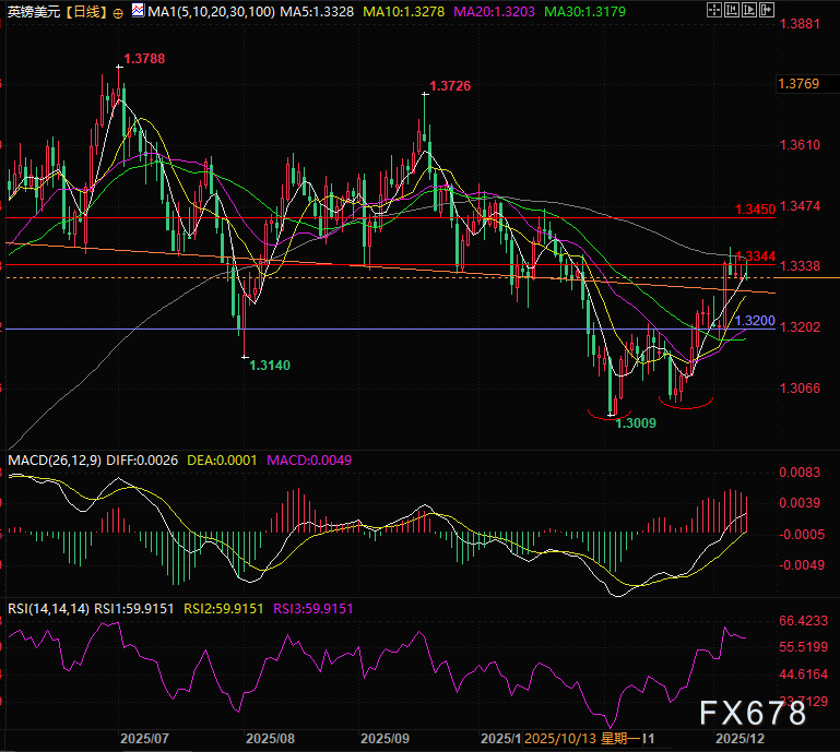 从交易视角来看,英镑兑美元当前处于“政策前观望”状态,1.3300关口成为短期多空博弈的核心。