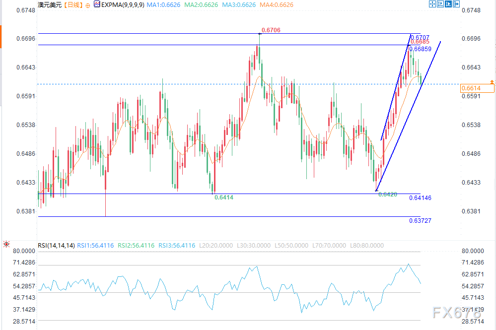 澳元/美元汇率走势正测试0.6620这一水平所代表的上升通道的下边界。如果跌破这一通道,就会对澳元/美元产生下行压力,使其价格跌至6月21日创下的6个月低点0.6414附近。